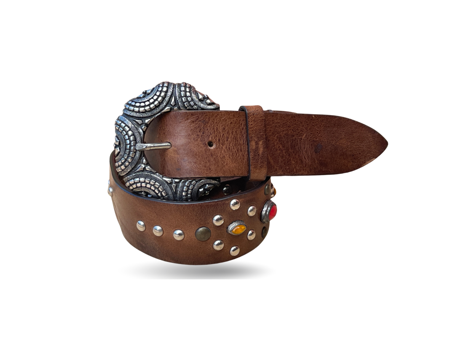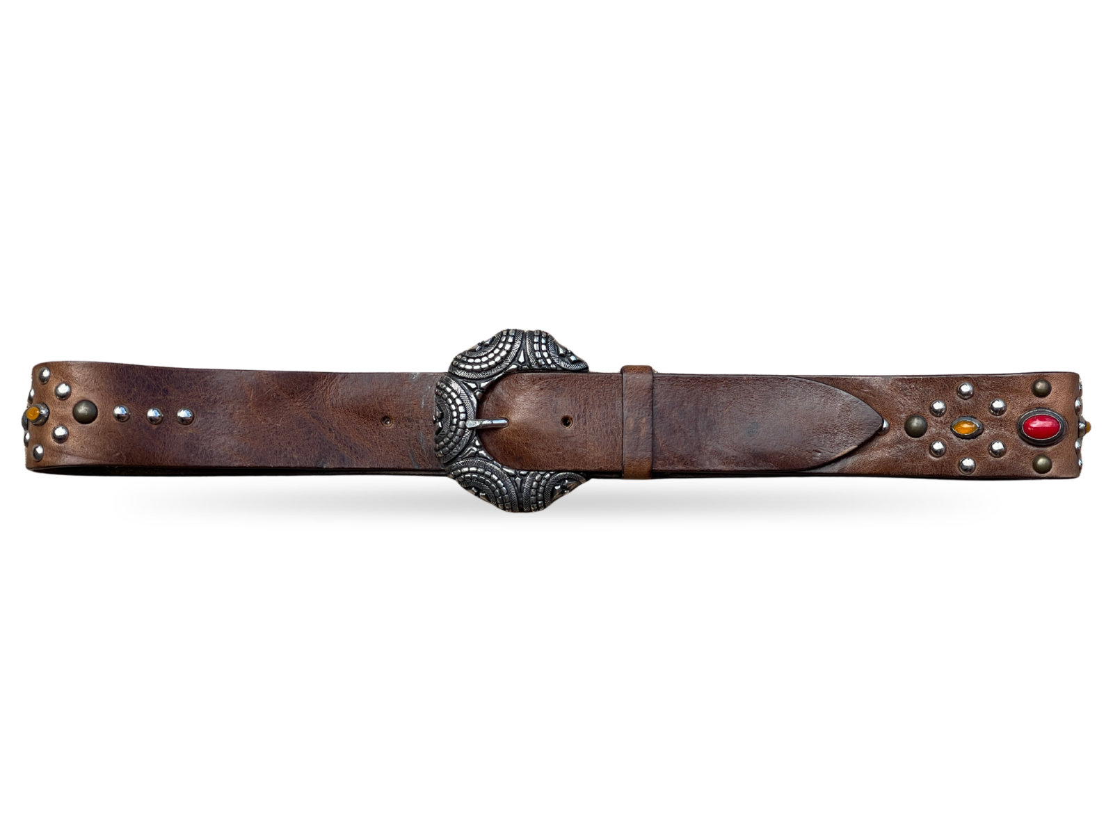 Gürtel Leder Vintage Boho Braun Schmucksteine Nieten 90 cm