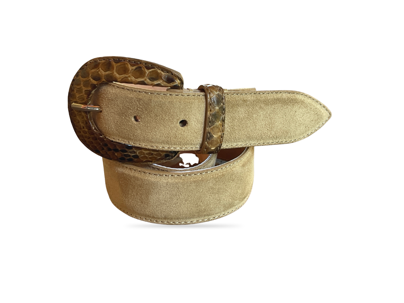 Gürtel aus Nubukleder mit Pythonleder-Schließe