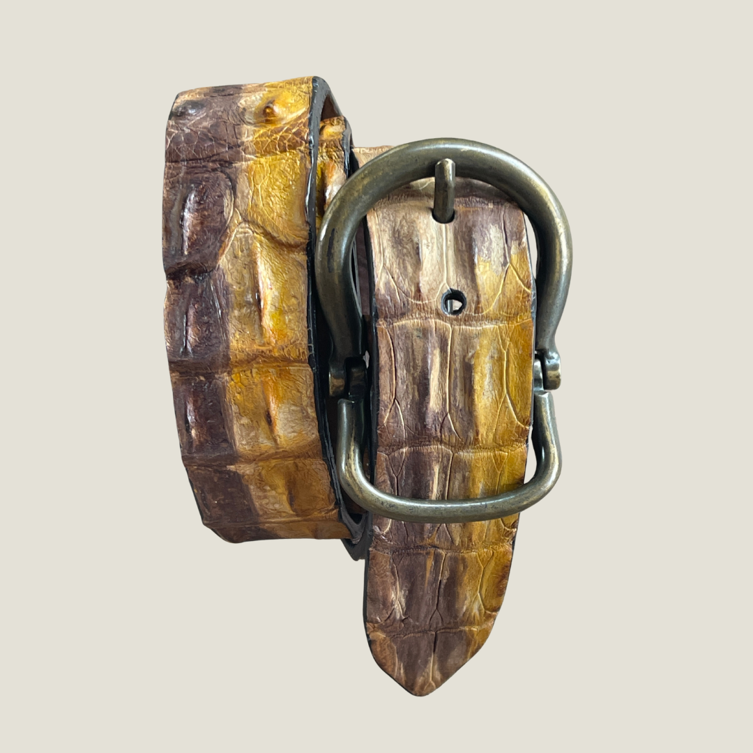 Italienischer Gürtel von Post & Co. aus handbemaltem Krokodilleder – traditionelles Handwerk trifft auf modernen Look.