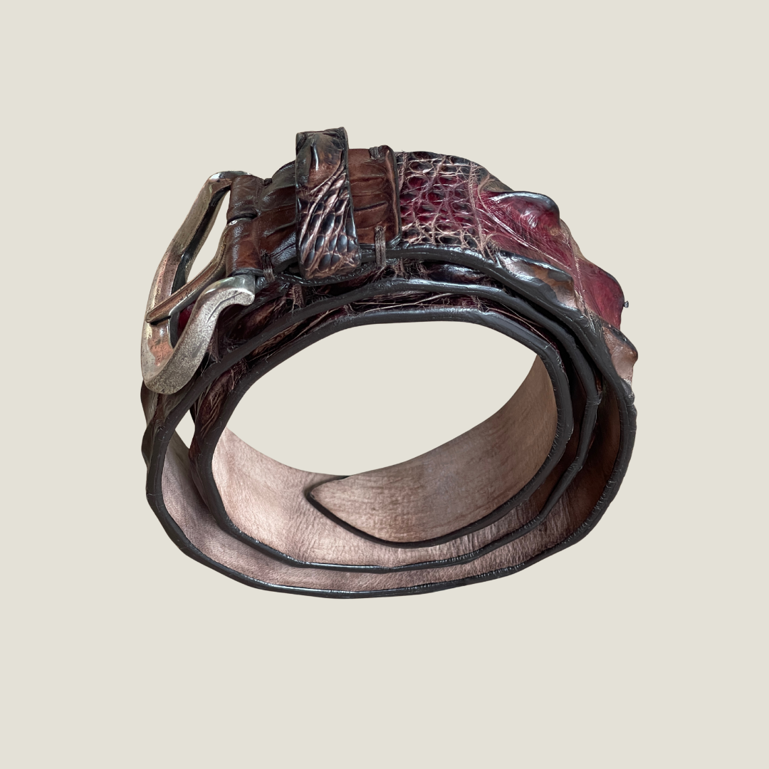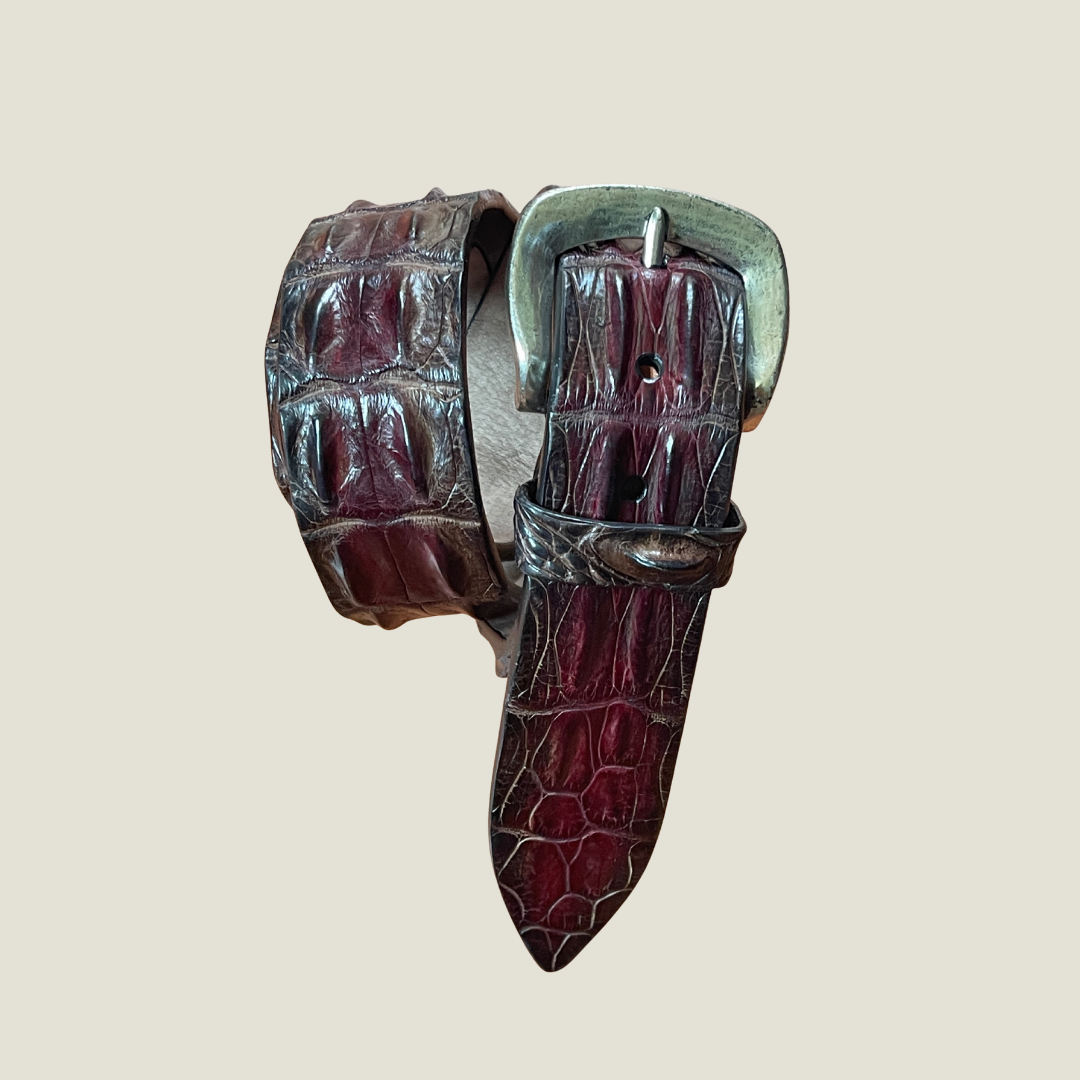 Dieser exklusive Gürtel aus handbemaltem Krokodilleder vereint traditionelle italienische Handwerkskunst mit außergewöhnlichem Design.